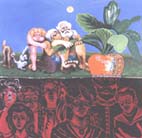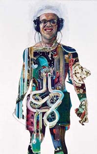 Размышления о нелегкой женской судьбине a la девичий дневник визуализированы в виде невероятных физиологических перевоплощений Монро. Инфантильный язык, подчеркивающий беззащитность конструкции собственного Я, демонстрирует образы, сочетающие черты кустодиевских купчих, Снегурочки, Аллы Пугачевой, матрешки и красотки с наклейки в кабине дальнобойщика. Самозабвенный эксгибиционизм Монро, однако, не чужд и специфической самоиронии. Очень выразительна картина, на которой ранимая красавица окружена безжалостно гонящими и поносящими ее завистливыми уродками. Остается только заключить, что на выставке в разнообразных ракурсах явлена полная гармония женской формы и ея же содержания. Помните, как говаривала фрекен Бок: «Милый, милый…». |