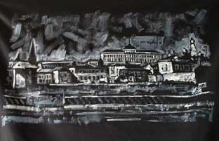 Выставка в темной и неотапливаемой руине МуАра – всегда испытание для художника. Архитектурное состояние обветшалых интерьеров флигеля отличается ни с чем не сравнимым своеобразием. Однако, новый проект Владимира Анзельма под названием «Ландшафты» вписался в это пространство на редкость органично.
