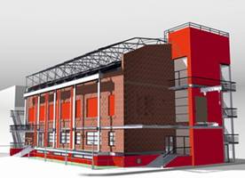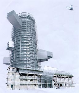 Итак, возведено новое строение, созданное по чертежам архитектурной мастерской Михаила Хазанова, М. Миндлиным, М. Ребровой, Н. Шангиным, инженером Н.Николаевой и конструктором Н. Канчели. Закончены 12-летние мытарства – ласково просимо в неоконструктивистский корпус! Багряные панели на кирпичных стенах, элегантные металлические опоры, выносные лестницы, галереи и пандусы – сплошной футуризм. Большой выставочный зал, хоть на роликах катайся, зал поменьше этажом выше – хочешь, смотри классику киноавангарда или видеоарт, хочешь - слушай лекцию со слайдами.