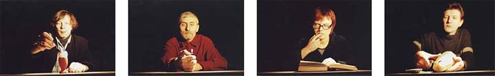 Все участники этой коалиции периодически выступают автономно. Однако наибольшей известности, популярности и премии “За достижения в области актуального искусства” на «Арт Москве» 2003 года художники добились именно как коллектив. Пионеры и пропагандисты нонспектакулярного искусства в наших широтах, на сей раз художники «Эскейп» исследуют сложные механизмы коллективного творчества и успешного сосуществования в группе. Представленная эффектная видеоинсталляция в метафорической форме повествует о том, что любому организму для результативного функционирования необходима гармония и напряжение всех участников процесса. Помните команды органов у Вуди Аллена: «Приём-приём… Мозг – кровеносной системе! Ответьте, приём. Сердце – легким! Глаза – рукам!». |