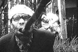 Довольно быстро становится ясно, что в пристройке и подвале имения упрятаны ветхие дневники, киноплёнки и загадочные скелетные останки. Обнаруженные документы проливают свет на адские евгенические разработки спецлужб. Время от времени показывают и чудом сбежавших бипедальных чумазых зомби, выразительно слоняющихся по унылым окрестностям в чем мать(?) родила, грабящих и спускающих (аки партизаны) под откос поезда. Словно шуруп-саморез Юфит вкручивает в мозг зрителя проникнутую пафосом мысль о том, что в минуту опасности приматы распрямляются и встают, а человек пригибается. |