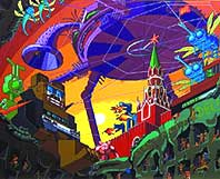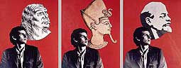 Похоже, что здесь никто не искал прямых сопоставлений, может быть потому-то выставка получилась сумбурная, но яркая. «За красным горизонтом» - это разудалое разбрасывание конфетти, эдакое визуальное эсперанто, сразу и не поймешь кто где. Тотальная ирония и нарочитая аттрактивность маркируют устремления братских народов говорить на интернациональном языке с.и. Скандальная зоофрения Олега Кулика и провокационная гербовая орнитология Войцеха Засадни – одинаково понятны любителям восточноевропейскаго постмодернизма.
