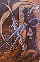 | Тем временем в Крокин-галерее явлена 10-я, юбилейная выставка в рамках проекта «АРХИВация соВРЕМЕНности». В лучах ретроспективного прожектора – раннее наследие выпускника медицинского института им. А.М. Сеченова, ех-гастроэнтеролога, а ныне современного художника Леонида Тишкова. На экспозиции фигурирует дюжина крупнокалиберных холстов, созданных в недрах мастерской Фурманного переулка в героические времена perestroiki and glasnosti, то есть почти ХХ лет назад. |
