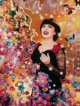 Поголовье томных адонисов и надменных див тщательно посыпается бриллиантовой и золотой пудрой, в то время как сценический антураж фотографического пространства затягивается зефирообразными облачками, усеивается тысячами пластмассовых роз, мелодраматически подсвечивается и покрывается толстым слоем анилиновой глазури. Надо ли говорить, что все фотографии скрупулезно ретушируются – помимо различных соцветий, бабочек и пестрых колибри, обычно задействуются языки пламени, слезы кристальной консистенции, жемчужные россыпи, густые закаты и прочие чудеса. Даже образы Мэрилина Мэнсона и Нины Хаген, будучи обработанными Пьером и Жилем, молниеносно превращаются в приторные ингредиенты гламурного пудинга.