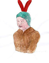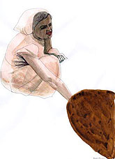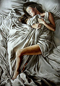 | Сюжетный репертуар концептуально ограничен - все картины Шубиной представляют собой томно спящую в различных положениях художницу, умеренно прикрытую барочными простынями. Мотив эротизации здесь наличествует весьма явственно, караваджистские драпировки эффектно оттеняют оголенные участки тела, на повестке дня - Даная’ 2007. Аутоэротический дневник, продолжающийся в графических обойных проекциях, позволяет говорить о невротической навязчивой закольцованности месседжа. Это случай достойный анализа Хайнца Кохута. |