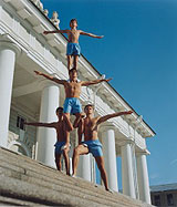 Валерий Кацуба, проведший не один день в архивах, изучая старые фотографии, представляет серию «Физкультура». Цикл посвящен истории гимнастики – атлеты разного пола, образующие разные композиции, призваны вызвать ассоциации с ретрообразцами, указывая на перманентное взыскание всеми поколениями соотечественников Красоты и Силы. Неподалеку экспонируются работы Константина Семина из серии «Сквотская жизнь», запечатлевшие интернациональных поборников сквотерской доктрины. Стилистически цикл несколько напоминает фотографии Ринеке Дийкстры и Вольфганга Тильманса и являет собой портретную панораму современных нон-конформистов. Однако, можно предположить, что рассматривать однотипные интерьеры портретируемых потомков Диогена будет интересно далеко не всем. |