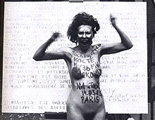 - Не могли вы рассказать еще немного об акциях того времени? - Ну, было много всего смешного. Тогда я с Басмаджаном начал работать. Знаете, от Монпарнаса идёт такая улица, по ней ещё всегда манифестации ходят? Так вот, значит, шли по ней однополые педерасты и лесбиянки. Сейчас-то это уже никого не интересует, а тогда был всё-таки 1980-й год. Я быстро взял картонку и написал «Я тоже лесбиянка», и пошел с ними. |