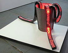 Ленты исполняют роли «бегущих строк» – стоит ли говорить, что текстовые модули любого интернет-сайта могут транслироваться посредством этого устройства. Через две недели конструкт заслуженно отправится на ярмарку АРТ-Базель...  Что ещё сказать? Время службы диодов 40 тысяч часов, ars longa, vita brevis.