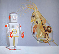 Драматический потенциал сценок позволяет силой фантазии смоделировать вытекающие спецэффекты. Роботы и представители энтомологической диаспоры редуцированы до уровня знаков. Иронизируя над фобическими реакциями и перманентным ожиданием Армагеддона целым рядом соотечественников, Сергей Денисов нарочито сталкивает две силы, эмблематически удостоверяющие опасности технологической и биологической интервенции.