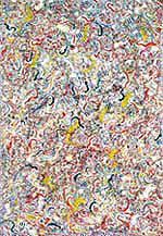 | Что касается выставки Евгения Чубарова, то на ней представлено одиннадцать вещей внушительных габаритов и изрядной проработанности. Любопытно, что целенаправленно создавать абстракции Чубаров начал в 1980-е гг. Тем не менее, аукционный аргумент этого года зафиксировал сумму $ 562 000, уплаченную за его холст «Без названия» 1992 года. Парадокс заключается в том, что один из самых дорогих современных отечественных художников живет чуть ли не анахоретом в Мытищах и отнюдь не является популярным и «раскрученным» артистом. |