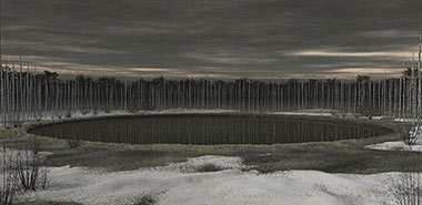 | Это произведение представляет собою компьютерную анимацию – предрассветная панорама лесного озера постеее-п-еее-ннн-оооо освящается восходящим солнцем. Пресловутый водоём, с окрестностями, задрапированными снегом, имеет инфернальный и котлованистый во всех смыслах вид. Это зрелище многозначительно до чрезвычайности. Не хватает только органной музыки. |