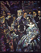 Живописная вакханалия Анзельма подразумевает пастозное мозаично-витражное конструирование. Мрачноватая экспрессионистская «устремленность» артистической манеры художника дробится калейдоскопическими гранями, образующими хрестоматийные сюжеты европейской живописи XIX века и передвижничества. Этот коктейль также включает в себя жонглирование архетипами – на выставке фигурирует изрядное количество натурального антрацита.