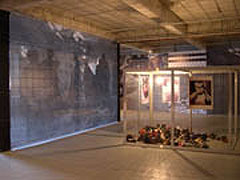 Бутафорские эффекты также включают в себя низвергнутые в припадке анонимной ярости огромные стулья, разбитые тарелки, зеркальные рамы и даже прикрытый тканью трупообразный манекен в сапогах, увидеть который можно лишь через специальное отверстие в стене. В другом зале развешаны гроздья военных касок, наполненных голубыми детальками паззлов, на фоне фрагмента речи Геббельса на Нюрнбергском процессе – «Народ всегда можно заставить делать то, что нужно лидерам…». Куча расчленённых гипсовых тел в комплекте с колючей проволокой завершает мрачную картину безграничных возможностей человеческого деструдо.