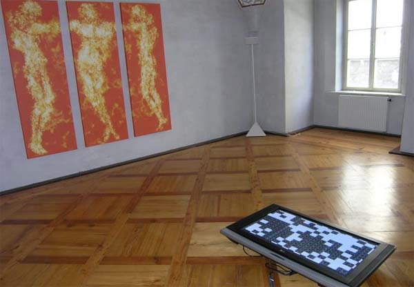 выставочное пространство, в котором будут представлены: 1. Хор (2002). 2. Мария (2002). 3. Солнце Правды, Добра и Красоты (2003). 4. Ступени (2005). 5. Освящение (2005). 6. Grace Major - новый проект (2007). Grace Major подзаголовок названия всей выставки. Это словосочетание имеет отношение с одной стороны к Форсмажору, а с другой к Непреодолимой Благодати Св. Франсиска. <"Архитектоника Благодати"; эта работа будет представлена на Арт-Москве-2007 галереей Айдан. Далее: "Фрактальная природа Благодати" (1 и 3) и "Бесплотные Силы" (2 и 4): |