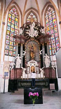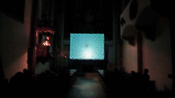 <1 июня в старейшей (13 век) церкви Граца перед алтарём установили большой экран, на который с обратной стороны транслировали видео "Ступени" под сопровождение текстов Григория Паламы, которые читал с амвона профессиональный актёр. Этот перформанс был включён в официальную программу "Долгая ночь церквей"> |