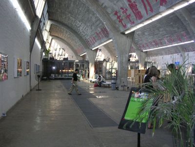 Одна из выставок 2004 года. Сбоку видны старые маоистские лозунги.