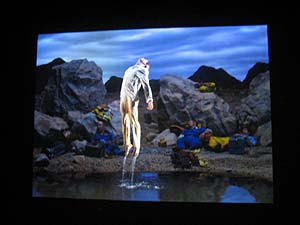 метафизические погружения. Стоит отметить, что сами темы, мягко говоря, не блещут новизной, и в какой-то мере уже утомляют своей повторяемостью. С одной стороны, это можно объяснить попыткой куратора систематизировать разнокалиберный состав участников, дабы зритель не утонул в этом умопомрачительном многообразии. С другой, чувствуется присутствие навязанной организаторами модели восприятия выставки. С третьей, что «Определенное состояние мира?» - коммерческий проект, и первостепенное значение его заключается в демонстрации арт-«звезд» мировой величины. Возможно, последнее может объяснить прозрачность восприятия каждого произведения. Несмотря на вышеперечисленные замечания, в целом, можно смело