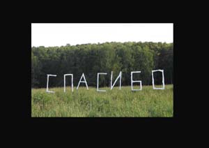 Началась полемика, кто и кому и за что говорит СПАСИБО, некоторые из зрителей утверждали, что это выражение благодарности за все, место, дескать, принадлежит Богу, на что бравые милиционеры заявили, что это место не Бога, а Лужкова. Тот что был совсем пьян начинал вести себя все более агрессивно, он пытался проехать между вкопанными в землю буквами, и направлял своего битюга на беременную жену Кузькина, а другой комментировал: «Беременным женщинам надо сидеть дома». Время от времени менты делали вид, что вызывают по рации начальника на вертолете, но, судя по всему, рация у них не работала, начальник с неба так и не появился. Однако не оставляло ощущение, что где-то в засаде притаился танк. |