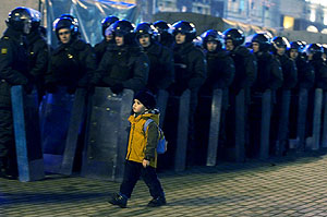 2. Триумфальная. Но на Триумфальной другой несанкционированный митинг: машут флагами и барабанят едросы. Ну, конечно же, едро пытается заглушить только что возникший голос гражданского общества барабанным боем и вытеснить его тело с площади марионетками массовых мероприятий и жесточайшим натиском космонавтов. Оппозиция по краям: на углу Тверской у зала Чайковского и здания Моспроекта с другой стороны площади - льется тонкими струйками, постоянно подвергаясь нападениям космонавтов. У гостиницы Пекин образовалась небольшая заводь, стоит, кричит. Пара атак космонавтов и она расплескалась. Мы двинулись на Баррикадную, туда говорят ВСЕ стекаются. Народу на Баррикадной не много, но и здесь омоновцы-космонавты. Собираемся вместе, и идем по темным дворам, извилистыми тропинками между домов стекаем к Белому дому. Поток не остановить, он течет, его опять перегораживают, но факт остается фактом – около ста человек протестующих практически дошли до Белого Дома. Фотографии этого дня сильно отличаются. На фоне огромного архива документации бурных боев с полицией на Триумфальной выделяются две, получившие звание «фото дня». Первая: маленький мальчик с ранцем за спиной и шеренга экипированных до зубов омоновцев. Другая: выброшенные на помойку барабаны. На символическом уровне здесь все ясно: происходит рождение гражданского общества, коим выступает маленький мальчик и выброшенные на помойку барабаны едросов, демонстрирующие конец эпохи «двойного дна», как реквизит декоративных театрализованных митингов. Так феномен симуляционизма российской официальной реальности описывает Андрей Лошак: «Медведев — симулякр института президентства. Центр¬избирком — симулякр выборов. Парламент — симулякр многопартийности…. РПЦ — симулякр духовности. Фонд «Федерация» — симулякр благотворительности. Мос¬горсуд — симулякр правосудия. «Сколково» — симулякр модернизации. «Народный фронт» тоже симулякр чего-то, непонятно, правда, чего». http://esquire.ru/editors-letter-72 Очевидна неспособность едра к творчеству. «Все это они будут делать громко, навязчиво, но плохо и криво. Они не умеют говорить без суфлера, выступать без массовки и работать в условиях нормальной, а не нарисованной реальности». http://www.afisha.ru/article/whatsnext/ Очень популярным и востребованным становится образ Путина в исполнении Вадика Монро. За Монро, кстати, можно выдать и самого Путина, что и делают активисты галереи «Жир» - разница последнее время неуловима. <Фото ИТАР ТАСС и неизвестный автор> |