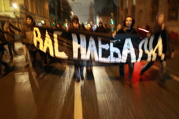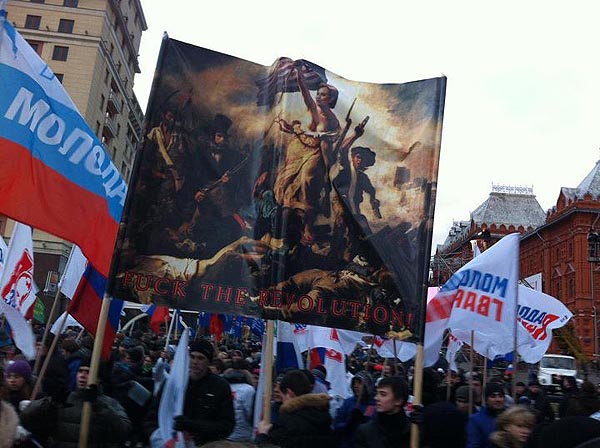 Накануне выборов на книжной ярмарке нон-фикшн состоялась презентация книги австрийского философа Геральда Раунинга «Искусство и революция. Художественный активизм в долгом двадцатом веке». Книгу издал Европейский университет СПБ в серии «эстетика и политика». На русский переводится не так много современной критической литературы по искусству, и в этом смысле событие было значимое, но вероятно никто не ожидал, что настолько попадающее в ситуацию. Я ее еще прочитать не успела, как-то последнее время не располагало к академическим штудиям. На презентации автор признавал автономию искусства и говорил, что только в исключительных случаях происходит соединение политики и искусства. Таким исключительным случаем является революция…. Кто бы мог подумать 3 декабря, что эта книжка станет так актуальна уже на следующий день. Хотя вряд ли кто-то успел ее прочитать, но уже 4 декабря по улице Пречистенка прошло шествие, одно из первых в череде митингов и шествий после выборной недели. Около пятидесяти художников. Художника я здесь понимаю достаточно широко. Например один из главных героев этого шествия - поэт Кирилл Медведев. Так же в шествии приняли участия художники, арт критики, работники арт институций, их друзья - всех я конечно не знаю, но без сомнения все это – арт тусовка. Это совершенно очевидно, когда смотришь на фотографии Игоря Подгорного. На мой искусствоведческий взгляд, романтический дух революции - истинное содержание этих фотографий. Порыв, протест, клубы яркого дыма, динамичное движение, практически полет на крыльях, которыми становится лозунг в духе немецкого романтизма: разочарование, оппозиционность - всё тут. Можно было бы продолжать сравнивать и узреть в этих фотографиях канонические черты романтического стиля, сопоставить, например, фотографии Подгорного и картину Гро «Наполеон на Аркопольском мосту». В подобном сравнении слишком прямолинейном и натянутом мы бы утверждали канон, преемственность традиции и силу автономии художественного дискурса, для которых, как многие утверждают, важнее формальное, стилистическое сходство с картиной 19 века, чем анализ контекстуальный. В случае Наполеона на мосту художник создает образ не просто рядового героя революции, собирательный образ победителя, зовущего вперед, за собой. Перед нами образ лидера нации, и в этом непреодолимый диссонанс с фотографической серией с Пречистенки. Но сравнение все же стоило произвести, хотя бы потому что связь времен обнаружилась в визуальном ряду официального митинга на Манежной 12 декабря в честь Дня конституции. |