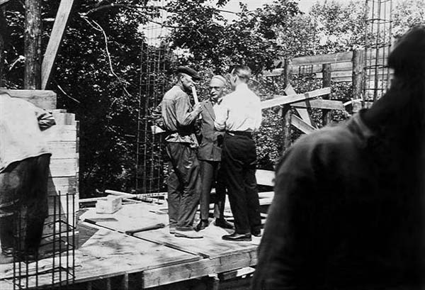 Архитектор Моисей Яковлевич Гинзбург на строитильной площадке в 1928 году.