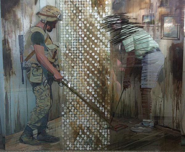 Все работы в «Прозрачных отношениях» объединены одной темой, которую можно определить как «дискретность восприятия». (При избытке информационных потоков, обыкновенный человек не в состоянии воспринять их в полном объеме, составить цельное представление о том, что здесь и сейчас происходит с цивилизацией, уверен художник). Сюжеты же просты и всем хорошо известны. Есть здесь «арабская весна». Есть эмиграция. Есть интерьеры ИКЕА. Три работы связаны с историей искусства, с Йозефом Бойсом. Две, под названием «Куба», изображают пионерок, поднимающих  флаг. Есть спортсмен-гольфист и военный, скрестившие миноискатель и клюшку, как шпаги на дуэли. Спорт легализует право человека на истребление, насилие. Спорт и война – большие схожие рифмы. Главное - делать все по правилам игры. А еще есть просто пляж, просто дива, просто дворик.