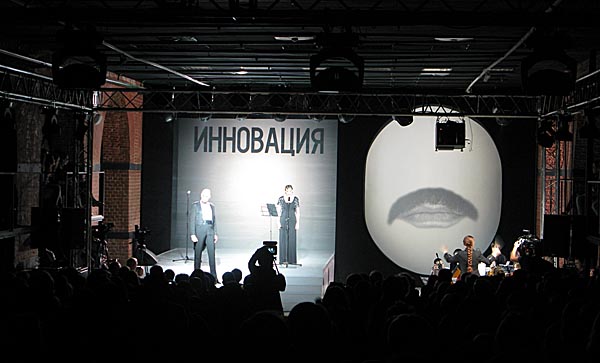 Церемония награждения главной государственной премией в области современного искусства проходила нынче в обновленном Музее Москвы. Режиссером церемонии и на этот раз (уже традиционно) стал Андрей Сильвестров. Композитором, написавшим музыку - Ираида Юсупова, автором стихов - Андрей Родионов. Литмонтаж исполнили артисты «Кабаребезумного Пьеро». Лофтовый интерьер бывших Провиантских складов с открытой кирпичной кладкой, арками и въездным пандусом (для лошадей?) стал отличной «рамой» инсталляции Степана Лукьянова и самому перформансу церемонии.