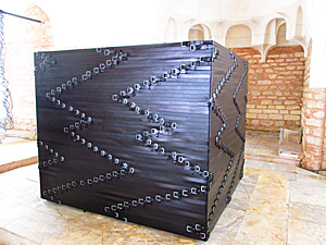 Проход к её каабам, задрапированным чёрными покрывалами и декорированным каллиграфическими надписями отдельных стихов из Корана, охраняли автоматчики. Впрочем, кроме обычных металлоискателей на входе в любое музейное пространство во время биеннале стоял вооружённый патруль. И все были довольны. Если нас не досматривают, не подслушивают и не обыскивают соседи, неужели же они хорошие? |