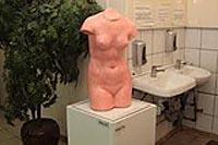 Идем дальше. Следующий объект – общественный туалет. Сам по себе он не является произведением. Произведения («Перерождение Венеры»), находятся внутри . Мыльные Венеры (натурально из мыла) сделали Михаи Лейкин и Мария Сумнина (группа МишМаш). Об Венер все посетители туалета (вход – 20 руб.) мылят руки.