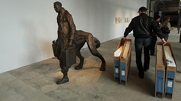 Экспозиция, как известно, разместилась в двух помещениях: в Центре дизайна Artplay на Яузе и в ЦУМ Art Foundation. Новое модное пространство на Artplay вполне логично для проведения мероприятий такого рода. ЦУМ Art Foundation – тоже. Хотя, надо помнить, что Петер Вайбель - известный акционист (еще в 60-е прошлого века бегал собакой покруче нашего Кулика) и антирыночник. А значит, идеологически, он не должен был бы размещать свою экспозицию в одном из самых дорогих и гламурных торговых точек Москвы. Куратор объяснил, что «все так, но, однако же, это повод продемонстрировать независимость современного искусства, и дать