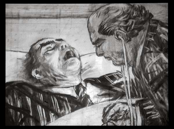 Произведения Кентриджа притягивают. И не только страстностью, но особой, неожиданной техникой, «собственным методом». Например, каждый кадр в своих фильмах художник рисует углем на одном и том же (!) листе бумаге. Сначала он переснимает первый рисунок. Потом стирает его и рисует другой. Переснимает его на пленку, стирает и делает третий на том же листе бумаги и т. д., пока бумага не почернеет и не окончательно истрется. Метод художника можно назвать великолепным перформансом прекрасного рисовальщика.