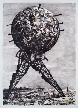 «Пять тем» (название выставки) последовательно раскрывают главные болевые точки художника.