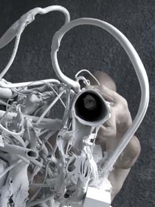 Майке Лейн, говорит, что «главное в данном проекте, также как и вообще в жизни – это адаптация естественного хаоса». Адаптация «естественного хаоса» отчетливо просматривается и в сибирских фотографиях Дебби Хьюсманс, и в скульптурных инсталляциях Анук Тис, сделанных из мусора, глины, бумаги и проч., и в собственных экспрессивных рисунках Майке Лейн. Разумеется, «адаптация естественного хаоса» стала ключевым моментом работы Вики Бегальской . Свой сложносочиненный перформанс, «Хочу тебя закопать», она впервые показала на открытии галереи Гельмана в Киеве семь лет назад. На московском вернисаже Вика Бегальская повторила его в несколько другой интерпретации. «В перформансе, показанном семь лет назад, была иная реальность. Ту реальность я снимала на видео в Харькове, в районе Харьковского Тракторного Завода или просто в районе ХТЗ. Поэтому и перформанс я назвала «Хочу тебя закопать» (аббревиатура ХТЗ). Район этот, когда-то один из самых приятных, один из первых конструктивистских районов города, превратился в бедный и обветшалый, с разрушенными зданиями, грязными улицами, нищим населением. Люди бродили здесь меж мусорных баков, кто-то выкидывал что-то, кто-то подбирал. Картина в реальности была очень печальная и неприглядная. Я подумала, как это можно изменить? Мне пришла в голову идея расшифровать аббревиатуру ХТЗ как «Хочу тебя закопать», снять все на видео и «закопать» реальность экрана. Нынче здесь, в Москве я закапываю московскую реальность, закапываю то, что мне не нравится. А мне не нравится многое: русские марши, лозунги «Москва для москвичей» и «Россия для русских», избиение и унижение национальных меньшинств. Все это у меня есть на видео. В своем перформансе я забрасываю это видео грязью до полного исчезновения, до превращения его в черный квадрат». Все сделано очень гражданственно и страстно. Естественный хаос адаптирует и Дмитрий Каварга, может быть не так страстно как Вика Бегальская, но горячо и тактильно. Дмитрий Каварга известен московской (и не только) публике интерактивными инсталляциями из полимеров, резины, металла и прочего. Зритель просто обязан щупать, трогать, дергать, двигать его объекты, вступать с ними в осязательный контакт. Этот объект называется «Несформированные замыслы». Сделан он из все тех же материалы, которые обычно использует художник: резина, полимеры, теплодевайсы (сенсорные и тепловые датчики). Прикасаясь к теплодевайсам, зритель передает скульптуре свое телесное тепло, и скульптура чудесным образом начинает шевелиться, меняться, двигаться. Что-то в ней начинает расслаиваться, скручиваться, падать вниз, подниматься вверх. Любой желающий может повлиять на формирование. Все зависит от энергетики. Процесс «формирования замыслов» можно ускорить, но можно и замедлить. «Я назвал проект «Несформированными замыслами» потому, что материалы уже заданы, а окончательной формы еще нету, - говорит Дмитрий Каврга. Каждый зритель формирует свой собственный замысел и создает собственное произведение, постоянно меняющееся в пространстве и времени». Так что вы можете поучаствовать в формировании. Еще успеете. Главное, помните, что как только телесный контакт прекращается, скульптура становится неподвижной.
