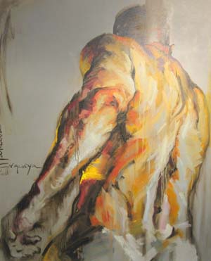 Ее десять большеформатных композиций, выполненных в традиционной технике холст; масло вполне маскулинны. Все сюжеты (головы, торсы) написаны с натуры свободным широким мазком. Брутальная мужская плоть вылеплена экспрессивно, мастерски. «Это моя первая персональная выставка в Москве, - говорит Евгения Мальцева. Обычно я была экспонентом каких-то общих выставок на ВИНЗАВОДе, в ЦДХ… Последний серьезный проект состоялся на ВИНЗАВОДе. Это была выставка молодых художников- живописцев. Тема? Перспективы современной живописи. Там я показала одну свою работу. Ее отнесли почему-то к поп-арту. Но я считаю, что скорее, моя живопись - современный экспрессионизм. Последний из художников, кто меня зацепил был Фрэнсис Бэкон. Я от него просто с ума сошла. На выставках я его пока, к сожалению, не видела, знаю только по альбомам. Смотрела фильм, о нем. Он перевернул всю душу. Плакать хотелось неделю после этого фильма. Я делала и живопись, и объекты, и инсталляции. Но в итоге поняла, что я все-таки живописец. (Училась в художественной школе, в лицее и Университете города Ижевска. Потом - в аспирантуре в Академии художеств). Живопись - это то, что мне нравится в жизни в первую очередь. В творчестве важно делать то, что тебе нравится. А нравятся мне мужчины, нравится мне экспрессия, нравится мне искусство». Закрученные в штопор фигуры, искаженные лица, бурая палитра – это конечно еще не Фрэнсис Бэкон. Но чтобы добиться того же, чего добился великий самоучка, время еще есть. Ведь и к Бэкону признание пришло не сразу, а только в тридцать шесть.