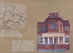 А графические листы Дианы Мачулиной запечатлели реальные архитектурные объекты новой капиталистической архитектуры. «Это все документально. Надо сказать, что я специально их не искала. Все объекты встретилось мне по дороге по каким-то другим делам. Как человек, живущий в городе, я все это вижу, и все проблемы чувствую на собственной шкуре. Отбор был жесткий, потому что всякой глупости у нас понастроено предостаточно. Мне хотелось выбрать либо самые характерные черты новой капиталистической архитектуры, либо самые вопиющие».