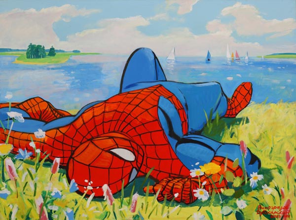 одетые и раздетые; мускулистые юноши; летательные аппараты; Спайдермен;