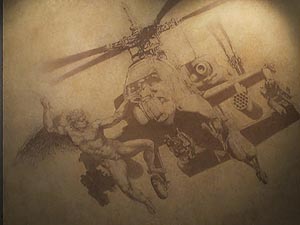 галерее11.12 – Владимир Колесников «ВВС» Нынче у Владимира Колесникова вместо ангелов - вертолеты. Идеальные, холодные машины представлены в его продолжающемся проекте «Силы Небесные». Монохромная живопись, точная композиция и безошибочный рисунок акцентирует психофизический аспект творческого процесса Владимира Колесникова. |
