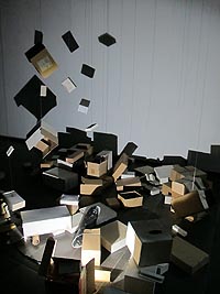 | В отличие от множества других художников, он любит слово «дизайн» и считает, что оно вполне может заменить слово «искусство». «Дизайн ведь не украшение, а решение», - говорит он. Его новый проект-инсталляция «Не вещь», - это, в какой-то мере, проект дизайнерский, потому как это «не украшение, а решение». Отрицая феномен вещи, он предлагает зрителю «предмет художника – но не вещь, которая возникает не из человеческого космоса вещей, служащих нам или уже потерявших полезность, свои функциональные смыслы, соотнесенные с пространством обитания человека». |