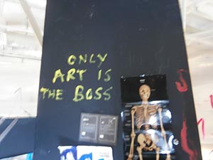Свою тотальную инсталляцию художник называет «искусством против идеологии». На пресс-конференции, которую дал художник (вместе с Симоном Мразом и Сергеем Братковым, сидевших за столом рядом со скелетами), он яростно убеждал присутствующих отказаться от партий, борьбы, идеологий, левых, правых, консервативных, демократических! Особенно демократических. (Как возмутились наши новые левые!) «Чтобы раз и навсегда прекратить все эти партии, надо вспомнить Гитлера. Хотите воевать, хотите идти в политику? Лучше идите играть, идите к детям. Потому что ваш бунт ничего общего не имеет с духом свободы, настоящей, истиной свободы, раскрепощающей и душу и тело».