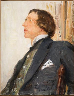 а «Портрет с историей». Портрет – жанр особый. Казалось бы, простой и ясный, он исполнен мистики и тайн (гоголевский «Портрет», уальдовский портрет, фаюмский портрет…) Как подтверждает пресс-релиз, «неживое изображение иногда входит в мир живых, полностью изменяя ход событий». Конечно, московский «Портрет с историей», нельзя рассматривать в столь угрюмом контексте, однако же, кое-что интересное высмотреть все же можно. Есть, например, здесь работа нашего классика Ильи Репина, писавшего знаменитого театрального критика Николая Николаевича Евреинова (слева). Вроде бы портрет как портрет. Хороший портрет. |