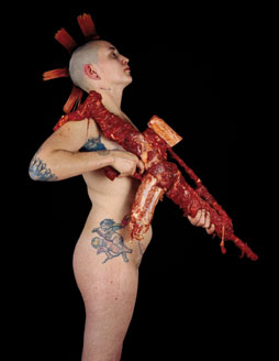 Русский некрореализм представлен и в Европейском доме фотографии (www.mep-fr.org ), где проводится выставка фотографий Дмитрия Цыкалова. График по образованию, художник лепит из кусков мяса различные типы стрелкового оружия и развешивает их на человеческих фигурах. Таким образом, он пытается изобразить то, на что указывает расхожее выражение «пушечное мясо», а также «мясификацию» общества.