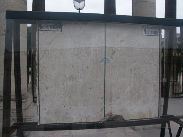 ![]() Сорок пять фрагментов бетонной стены, творчески переработанные французскими, русскими, китайскими и немецкими художниками, выставлены вдоль внутреннего сада. ![]() Многие из работ были созданы уже гораздо позже разрушения стены по заказу коллекционера Сильвестра Верже. Из русских художников можно увидеть работы Кабакова, Булатова, Брускина и Заборова. ![]() До 1 июня. |