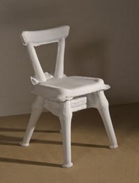 <Канадский культурный центр представляет довольно любопытные работы известного канадского художника британского происхождения Эрика Кэмбела. Способ создания, или вернее, порождения работ выражает свойственную англичанам эксцентричность: внутри каждого произведения заключен некоторый обычный предмет: коробка сахара, стул, роза, детский ботинок. На эти объекты художник, слой за слоем, наносит акриловый гипс ( acrylic gesso) и дает им просохнуть. |