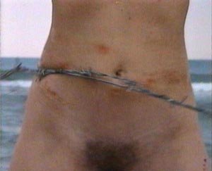 В соседнем зале проецируются весьма «вымученное» видео израильской художницы Сигалит Ландо «Колючий хола хуп»; к счастью, эти упражнения не сопровождаются немедленным погружением в Мертвое море, иначе ощущения должны быть еще более яркими. В зале «Телография» можно увидеть ранние перформансы Абрамович («Освобождая тело»), забавную работу с телом мексиканской художницы Сони Кураны «Птица», где комически обыгрывается крупно скроенное тело индейской женщины.
