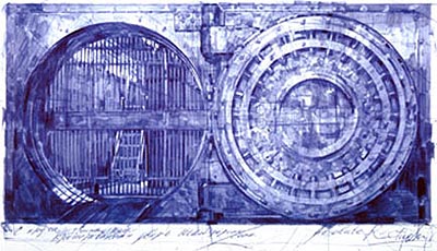 Графику выставляет и Андрей Молодкин в галерее «Орел» (www.orelart.com, до 15 мая 2010). Работы в стиле опт-арта, выполненные красной и синей шариковыми ручками, кажется, тестируют на индивидуальную переносимость триколора. У самого художника переносимость явно низкая: на центральной работе синяя окружность трансформируется в окошко надзирателя, открывающееся в камеру с вышкой.