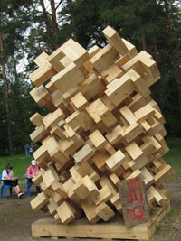 Основной такой площадкой стал городской парк, больше похожий на лес, где разместились несколько достойных внимания объектов. Это деревянная башня "Big gini", созданная из однотипных модулей американцем Джоном Пауэрсом, художником с мировым именем. По его признанию, все его работы - это один большой проект. Он просто бесконечно соединяет тысячи одинаковых модулей в шары, пирамиды, полотна и т.д., создавая четко выстроенные архитектурные формы. Выросший в Чикаго и воспитанный на работах Фрэнка Ллойд Райта, который призывал мыслить простыми формами, он эти простые формы соединяет, как бы играя в большой тетрис. www.johnpowers.us