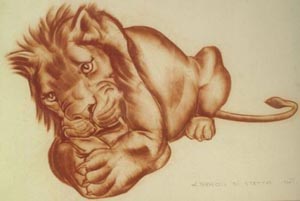 Отдельно хочется отметить серию ранних работ, видимо, еще студенческих, изображающих животных. От слона, бегемота, леопарда, льва, шимпанзе, выполненных сангиной, невозможно оторваться. У каждого свой характер, свое настроение. Пожалуй, это лучшая часть экспозиции.http://www.ngvk.ru/news/2012/05/19/1222/