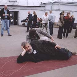 | <<АРТФон - 1 с Оксаной Саркисян. 5 сентября 2005. АРТ оккупация. Современное российское искусство настойчиво ищет способы прямого взаимодействия с широкой зрительской аудиторией, и возможно в этом проявляется его наследственность, ведь искусство андеграунда очень страдало в оторванности от публики, и институциональная система их отношений еще не до конца сложилась. Осваивая шаг за шагом современные формы презентации искусства, мы начинаем осознанно приближаться к таким практикам искусства как public art. |