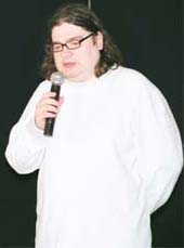 <<Еще одну конференцию, посвященную войне, организовал Сергей Бугаев – Африка в клубе Газгольдер 5-8 ноября. В ней участвовали психиатры, астро-физики, представители Тибетского ламы и основатель психоделического реализма Павел Пепперштейн. Тема конференции – война будущего, практически матрица. Война разных конфессий будет развертываться в области бессознательного. Главная фигура в этой войне, по мнению Сергея Бугаева, – художник, который должен спасти бессознательное. В какой-то степени эта идея созвучна задаче которую ставит перед художником Анатолий Осмоловский, - в преодолении массмедийной пленки. Материалы конференции мы не публикуем, потому что считаем ее художественной акцией Сергея Бугаева, а не конференцией, которая понимается как общественно значимая дискуссия.