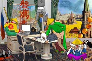 8 октября во второй половине дня большинство работ миновали таможню. За исключением примерно 18 работ групп "Синие носы" (серия "Маски-шоу" - фото вверху и 2 плаката внизу), "Горячие головы" - фото внизу вправа - и "ПГ" (серия "Слава России!" - фото слева и внизу - и "Установки мобильной агитации " - фото внизу справа), Марии Константиновой (2), Вячеслава Сысоева (1) и Владислава Монро (1 - фото внизу)